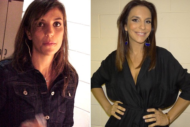 Ivete Sangalo em dois momentos diferentes nos bastidores do programa. Em 2005 e em 2011